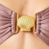Double cut-outs FTW with the Seas the Day One-Piece. Two gorgeous gold seashells adorn the front and shine fabric makes this swimsuit feel super special and luxurious. Bitsy Coverage Shell Hardware Shine Fabric Cutouts on Stomach Removable Straps Removable Pads Adjustable Straps Size XS-XL 80% Nylon | 20% Spandex Style # SHSDMB25